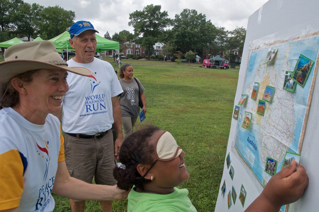 Peace Run organizers from over 20 countries create booths where the children come to learn about that country and play some kind of game or complete an activity.
