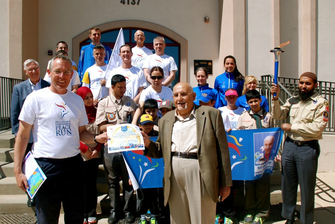 Mr Dawud Assad, Chairman of Religious Events Planning Committee and founding member of the Islamic Society of Central Jersey, warmly greeted the Peace Run Team. Prayers from the Koran were offered and translated for the team. Mr Assad emphasized the unity and peacefulness of all religions. He explained that the word "Islam" means peace.