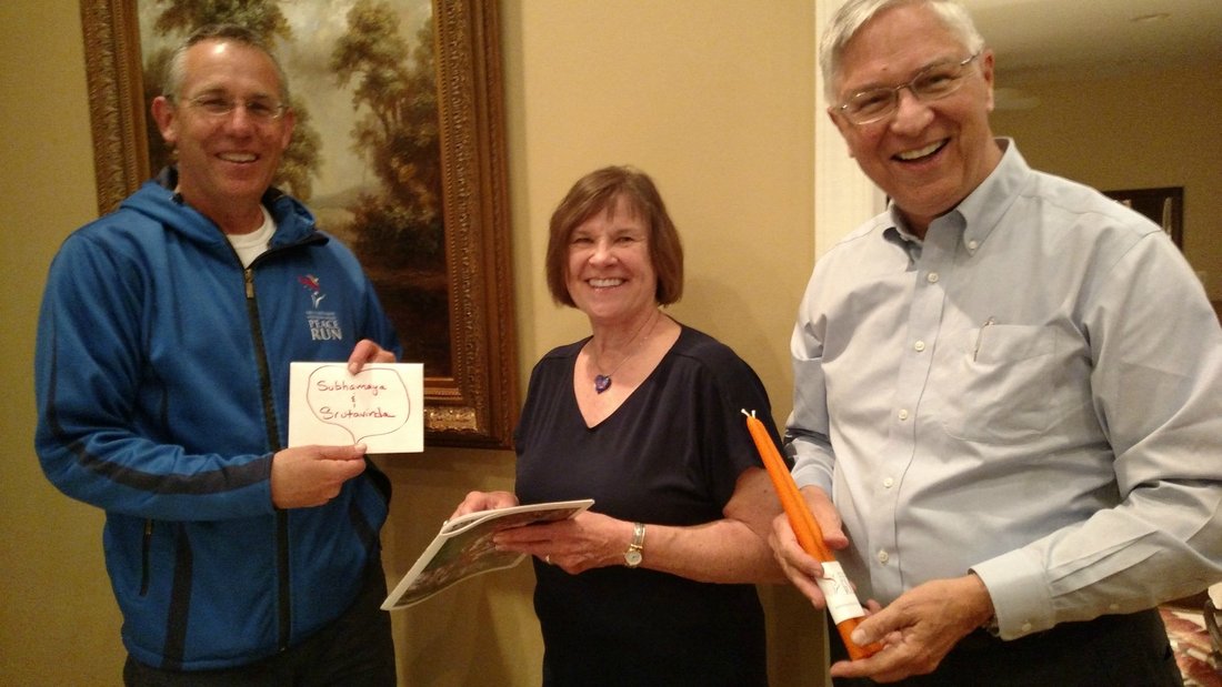 Srutavinda Ginny Cusack and Subhamaya Tom Cusack are long time friends and big time supporters of the Peace Run. They coordinated all of our events in New Jersey, fed our team sumptuously and accommodated 20 of us in their beautiful home. Their ever generous enthusiasm and oneness gave tremendous joy and comfort to all of us.