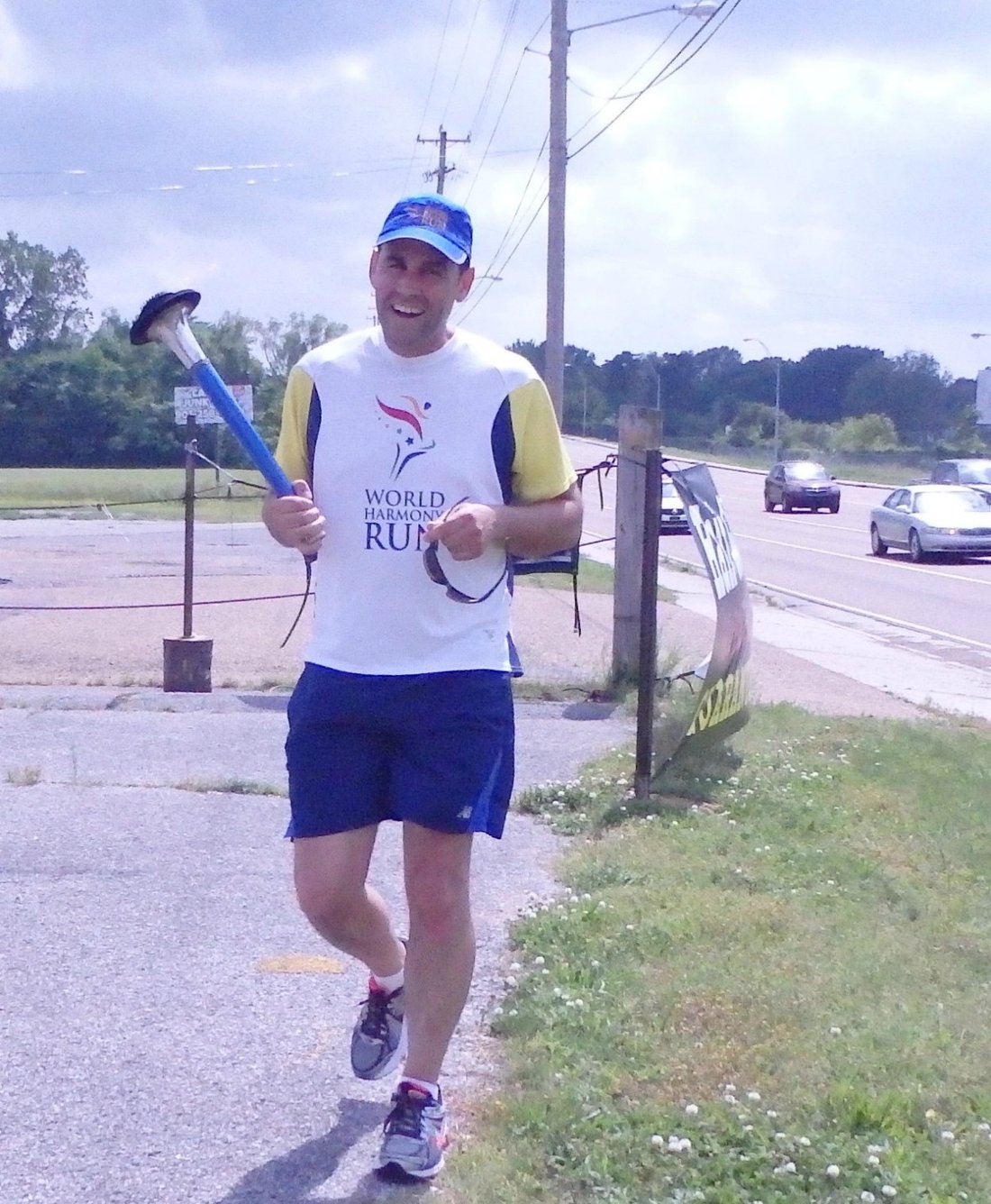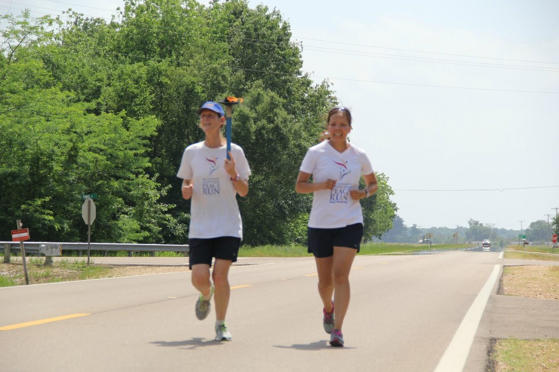 When this kind Sheriff, Officer Romero, stopped me as I was running along the highway to Memphis, I thought he was going to ask me to leave the road. But what he actually wanted was to hold the torch and get a photo of it. He said,"Sir, can you take a photo of me with the Peace Torch." This kind of spontaneous experience, especially with an officer of the law, really gives us joy and llifts our spirits as we run the busy highways.