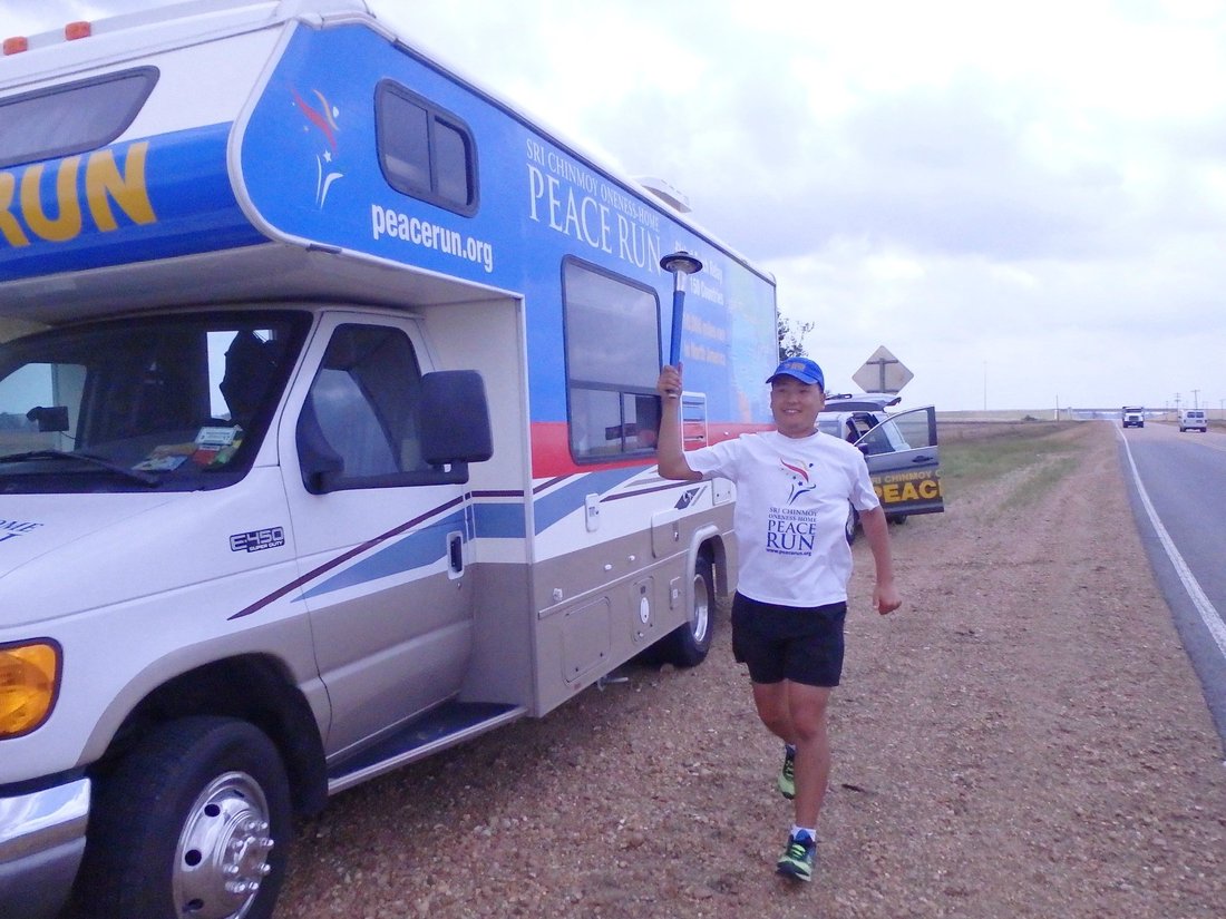 Natabara from Seattle comes in after a hot run, his last one for this portion of the North American Peace Run.