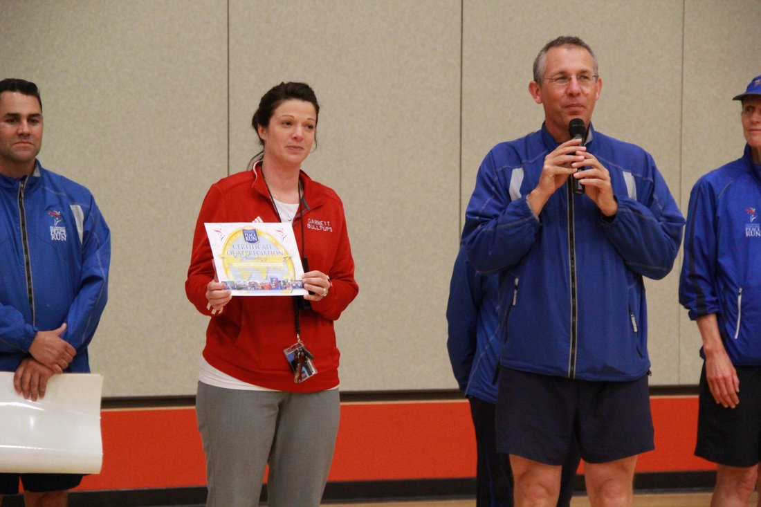 Physical Education Teacher Megan accepts our Certificate of Appreciation on behalf of this very dynamic school. We are very grateful to the teachers who help us make these ceremonies possible.