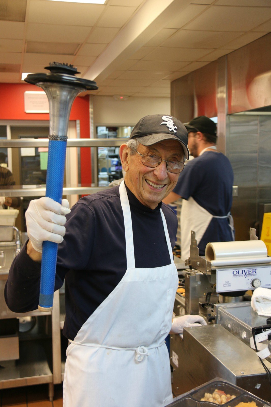 This man is the oldest volunteer, he is 86 years old and we were thrilled to meet with him! Here you can see he is packing the meals.