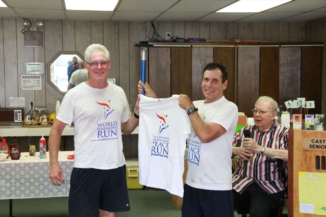 We thanked Mike for running with us and provided him with an update to his T-shirt with our Peace Run logo.