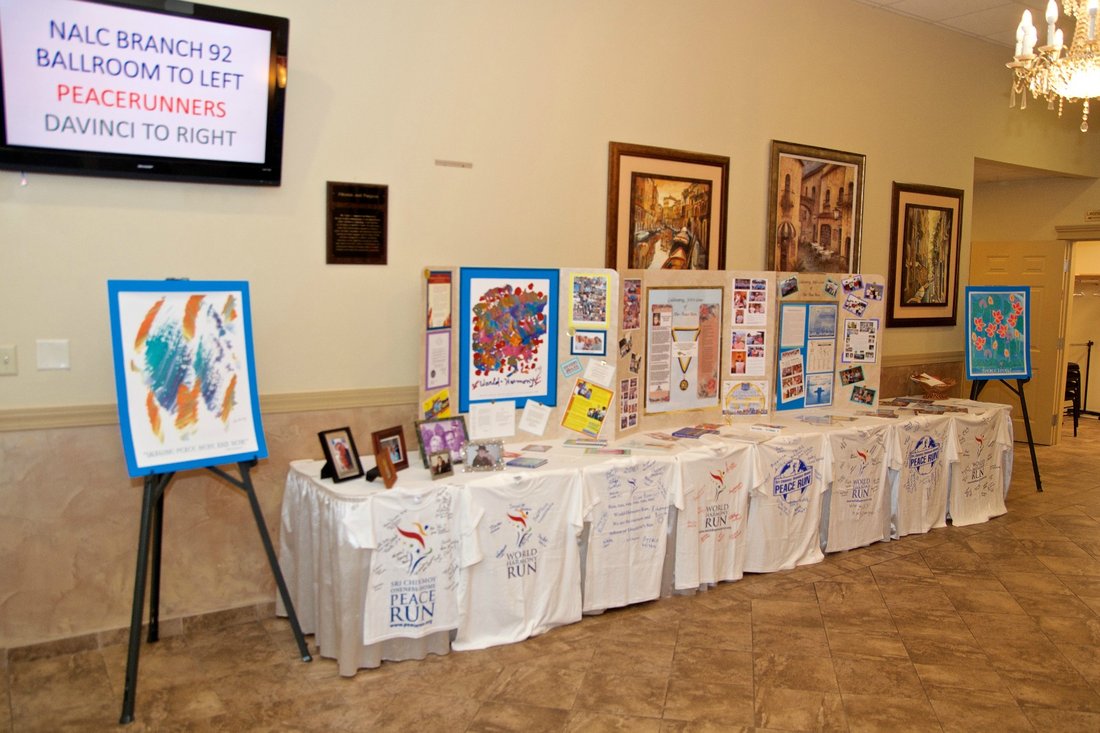 Unfortunately JoJo passed away last year but left this wonderful collection of Peace Run memorablia to the Italian Heritage Center. Her sisters Maria and Louis kindly created this beautiful museum of photos, paintings by Sri Chinmoy, news articles, T Shirts, brochures on the Peace Run and even the Peace Run Torch Bearer Award JoJo was given for her work with children and the community.