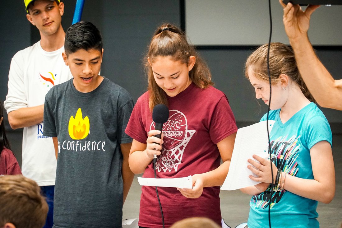 Harita explains the second skit to two voluteers who showed us what peace actually is, not trying to beat the other person by cheating, but working together!