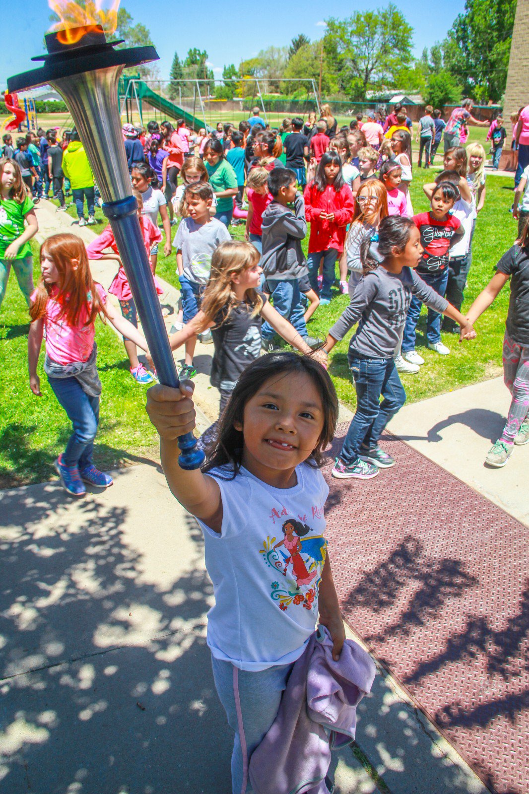 The ceremony at Montezuma Creek Elementary is on a Navajo Reservation. Running comes naturally to the Navajo. When asked who loves the sport the team got their most unmainous response yet. The kids watched the video.