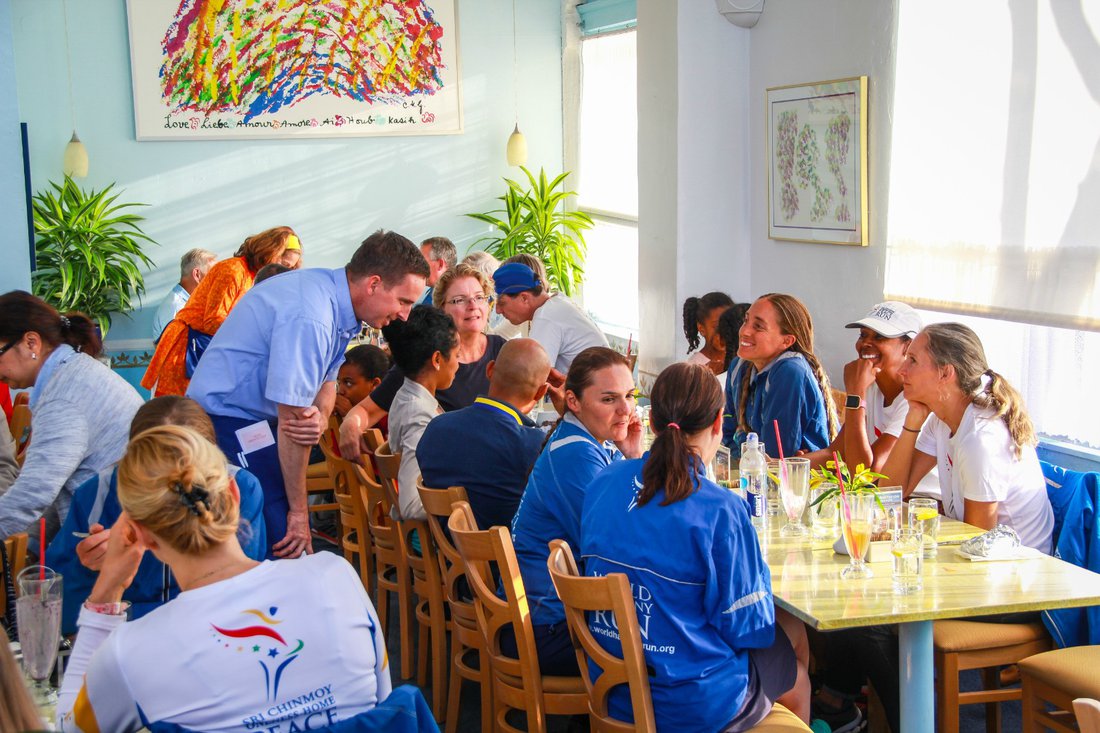 The day ended with a fabulous meal for everyone at Jyoti-Bihanga Restaurant. Many of the staff members are also big fans of Meb! What a perfect end to a day filled with inspiration, happiness and Oneness-Family Peace!!!