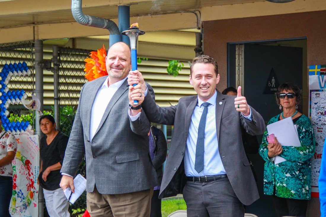 Our third school visit of the day was to Field Elementary School. The Principal, Amy Griffiths, was enthusiastically waiting to run the torch into the school!