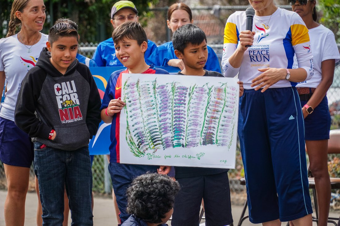 Our last event of the day was a Torch-Bearer Award Ceremony at the local Peace Garden in Normal Heights, which happens to be the home of a Statue of Peace Run Founder, Sri Chinmoy.