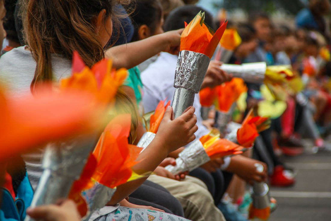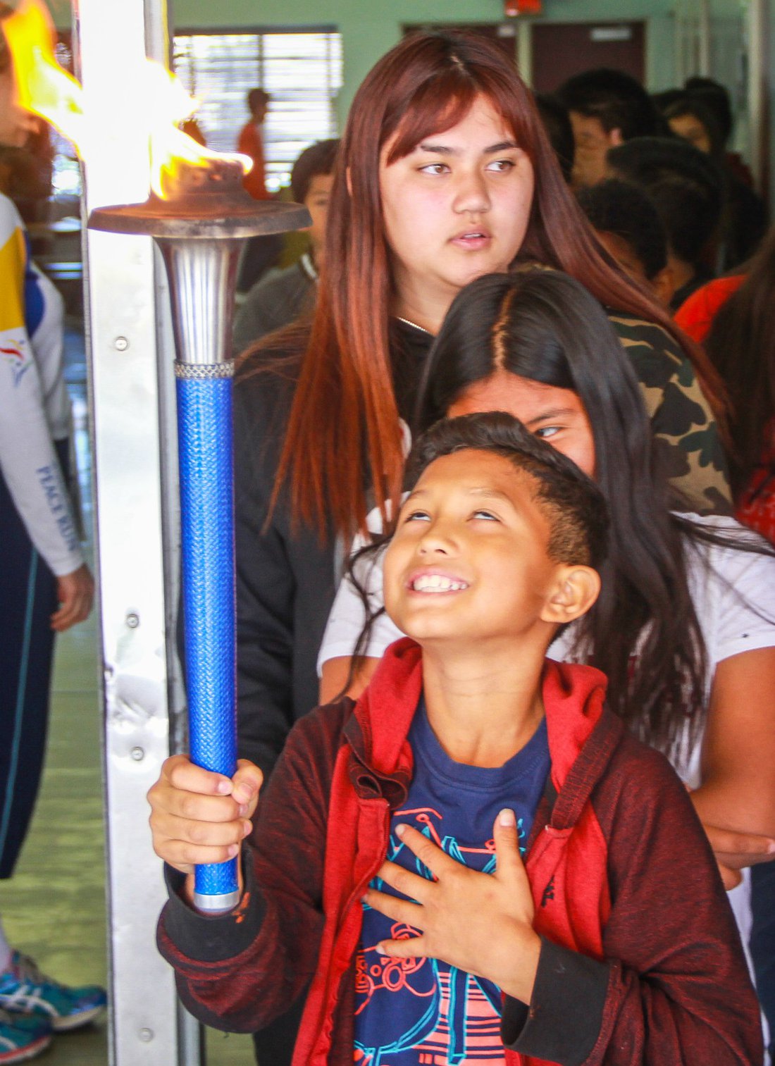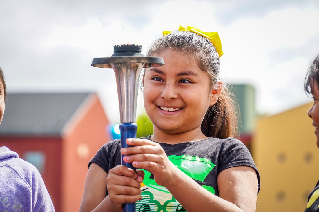 Our third school visit of the day was to Field Elementary School. The Principal, Amy Griffiths, was enthusiastically waiting to run the torch into the school!