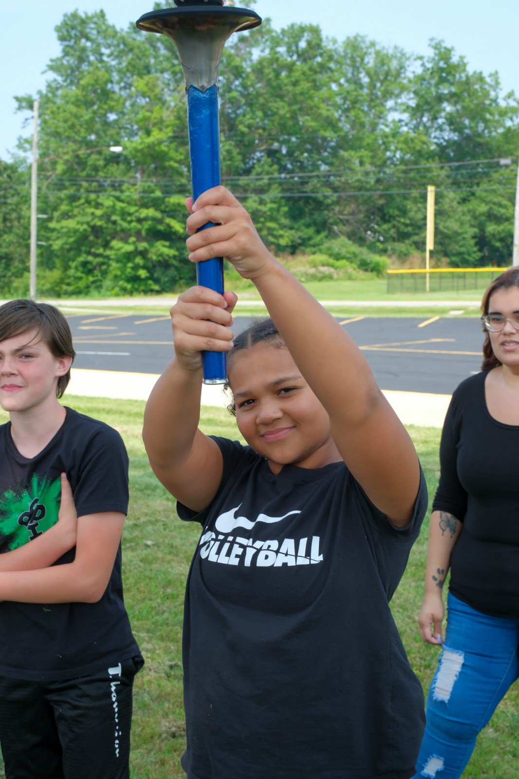 Jessica Haines, President of the Rotary Club, holds the torch.