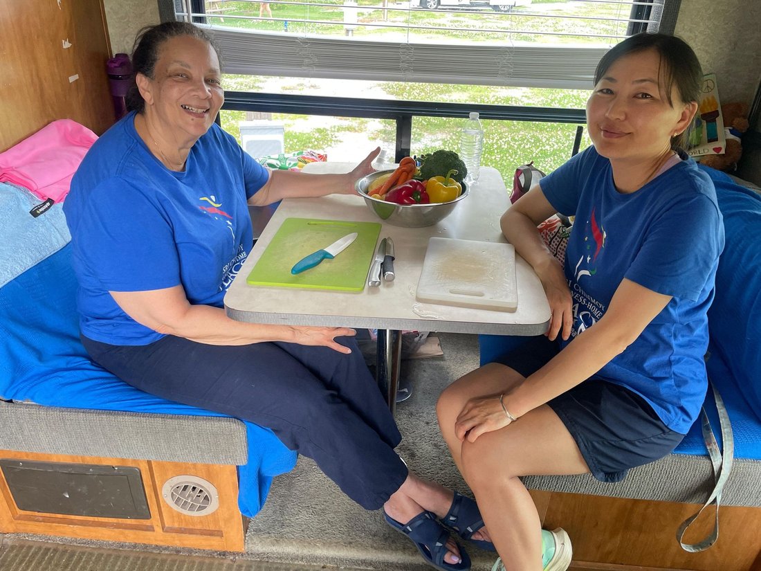 Two of our cooks for tonight's delicious meal prepared in our trusty RV camper.